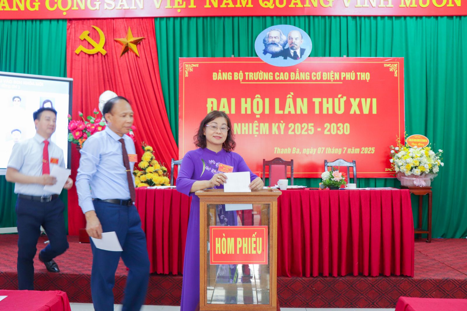 Sau hai ngày làm việc khẩn trương, nghiêm túc và hiệu quả, Đại hội Đảng bộ Trường Cao đẳng Cơ điện Phú Thọ lần thứ XVI, nhiệm kỳ 2025–2030 đã thành công tốt đẹp. Thay mặt Ban Chấp hành khóa mới, đồng chí Trần Thị Thúy Lan - Bí thư Đảng ủy khóa XVI gửi lời cảm ơn sâu sắc tới các đại biểu đã phát huy tinh thần trách nhiệm, trí tuệ và tâm huyết góp phần vào thành công của Đại hội. Đồng chí khẳng định, Ban Chấp hành khóa XVI sẽ tiếp tục phát huy tinh thần đoàn kết, thống nhất trong ý chí và hành động, kêu gọi toàn thể đảng viên, cán bộ viên chức và HSSV toàn Trường chung sức, đồng lòng thực hiện thắng lợi các mục tiêu, nhiệm vụ đã đề ra trong Nghị quyết Đại hội.