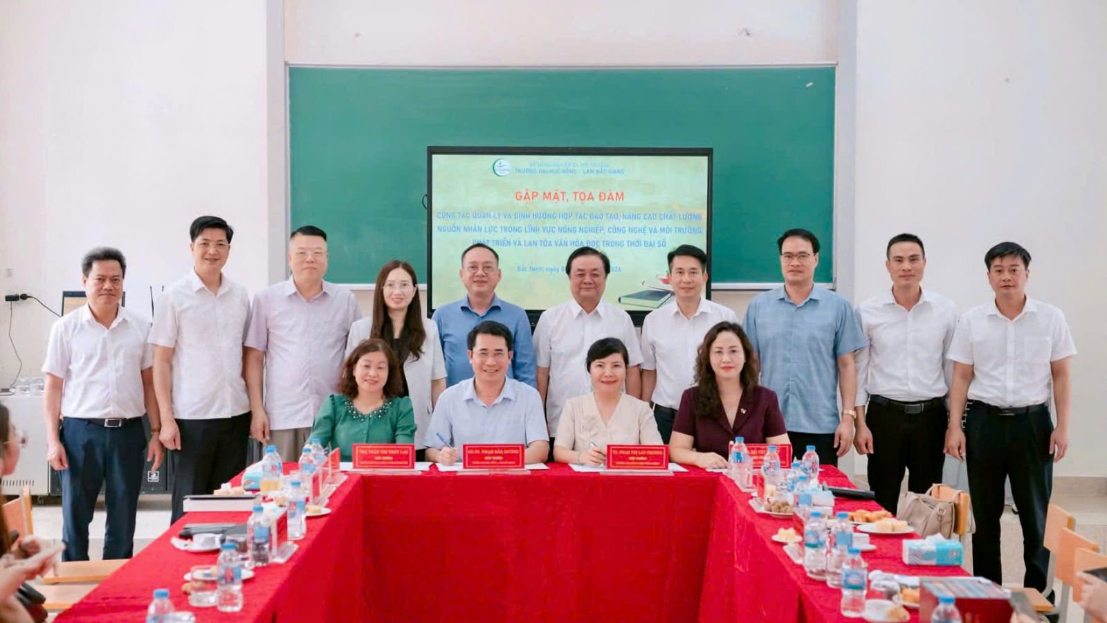 Trong hành trình phát triển của mỗi cơ sở giáo dục, những cái bắt tay hợp tác không chỉ là sự gắn kết giữa các đơn vị đào tạo, mà còn là sự sẻ chia trách nhiệm đối với tương lai của người học và sự phát triển của đất nước. Với tinh thần đó, ngày 09/4/2026, tại tỉnh Bắc Giang đã diễn ra chương trình gặp mặt, tọa đàm và ký kết hợp tác đào tạo giữa các trường cao đẳng thuộc Bộ Nông nghiệp và Môi trường với Trường Đại học Nông – Lâm Bắc Giang.